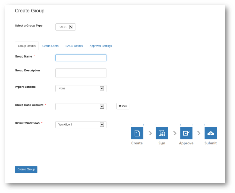 For BACS submissions there are 4 steps, Create, Sign, Approve and Submit.
